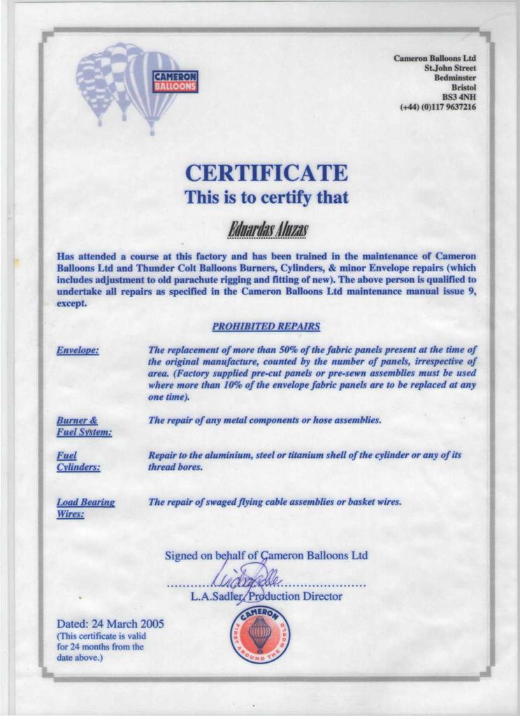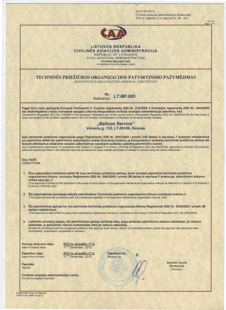 Oro balionų remontas ir techninė priežiūra